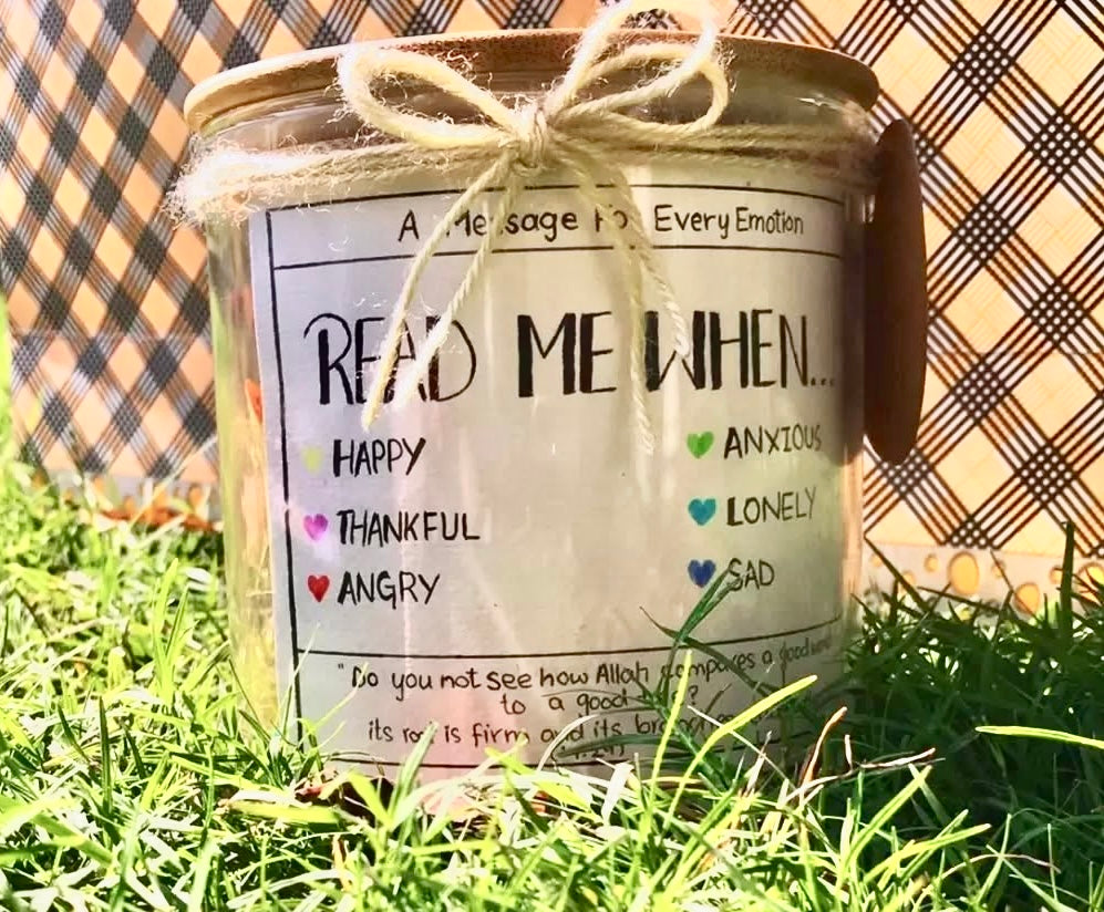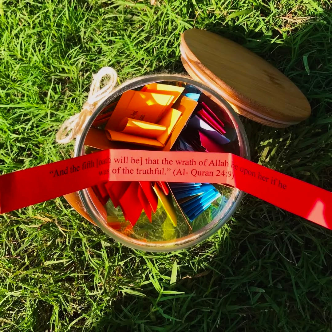 - Handmade jar filled with Qur’anic ayahs/reminders